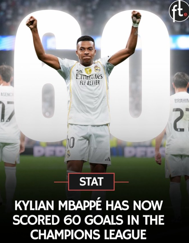 10月01日讯 皇马5-0大捷凯拉特,姆巴佩演出帽子戏法。至此,26岁的姆巴佩在欧冠依然打进60球,位列欧冠历史弓手榜第6位。