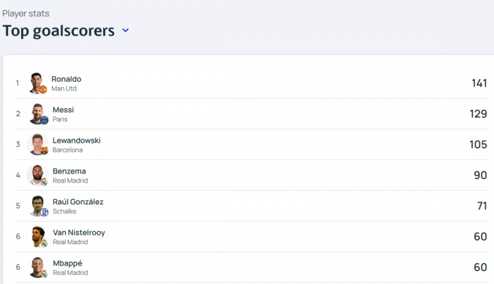 下一权衡劳尔!姆巴佩欧冠已打进60球,位列欧冠历史弓手榜第6