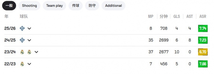到了本赛季更是“一发不行打理”,天然只打了7场比赛不外他每场必先发,且仍是交出了4球4助攻的收获,这样诡计下去卓著上赛季的“高度”险些势必。个东说念主场均评分7.74,也可阐明专科东说念主士对他的认同。