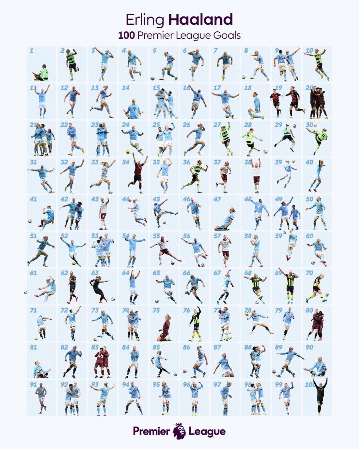 哪个画面你还紧记?英超海报致意哈兰德,再现他100次进球短暂
