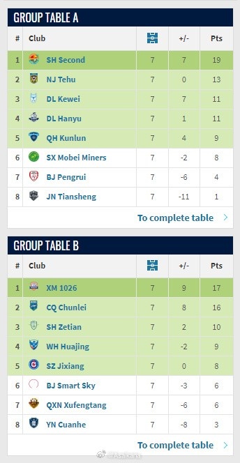上海赛更达、厦门壹零贰陆区别赢得了两个组的头名,升入来岁中乙