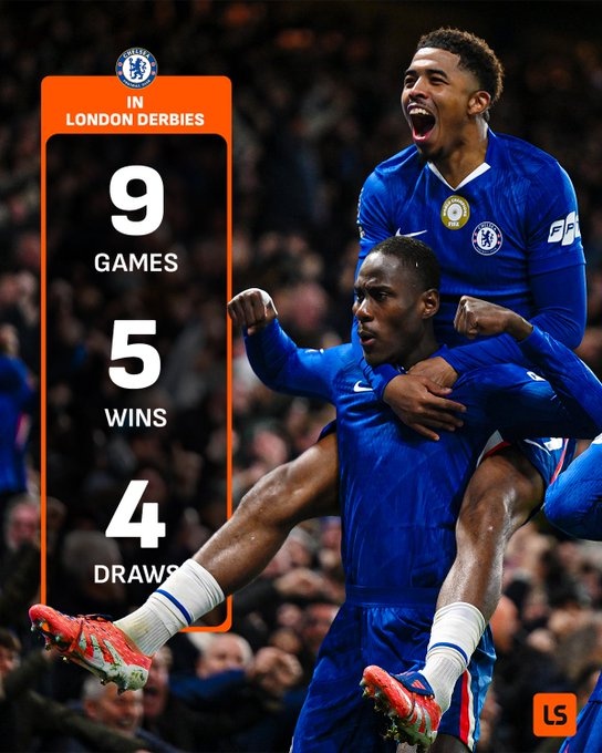 近9场伦敦德比,切尔西有着骄东谈主的战绩,他们5胜4平保握不败。