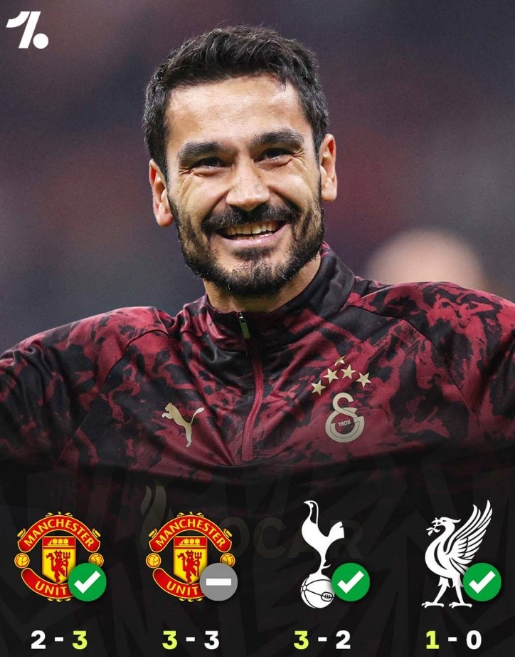 加拉塔萨雷近4场欧战对阵英超球队3胜1平,打败赤军、曼联、热刺