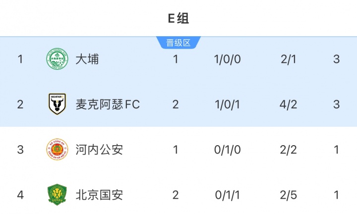 亚冠2积分榜:国安2轮仅1分掉至垫底,麦克阿瑟1胜1负升至第2