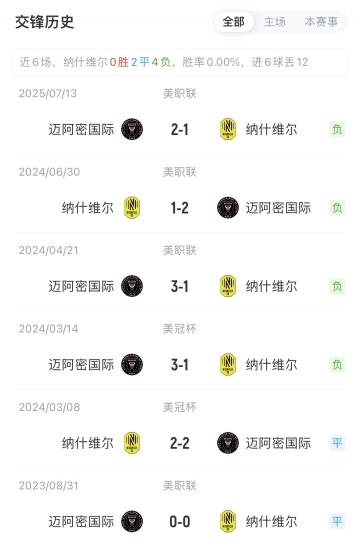 迈阿密海外联赛18胜8平7负积62分,近期得益2连胜;纳什维尔联赛16胜6平11负积54分,近2轮不败。迈阿密对阵纳什维尔已8场不败(5胜3平)。
