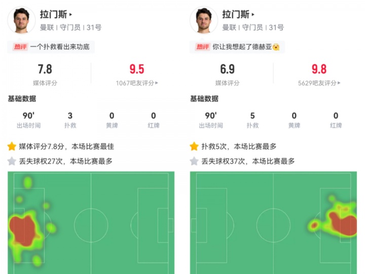 好门将的影响力😍拉门斯首发2场孝敬8扑救,助曼联终获英超连胜
