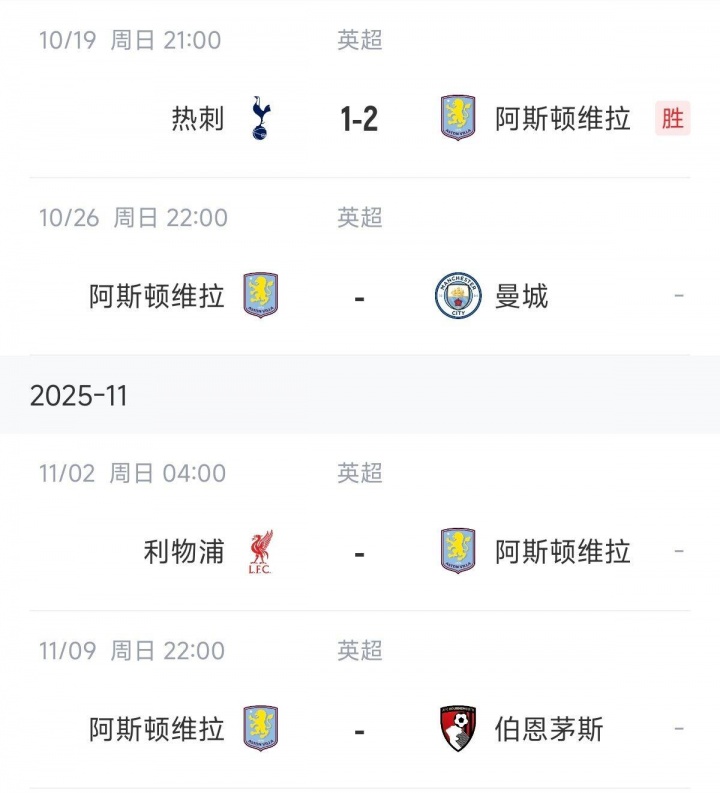 二三四名步骤上!维拉豪取五连胜景象炸裂,行将连战曼城赤军樱桃