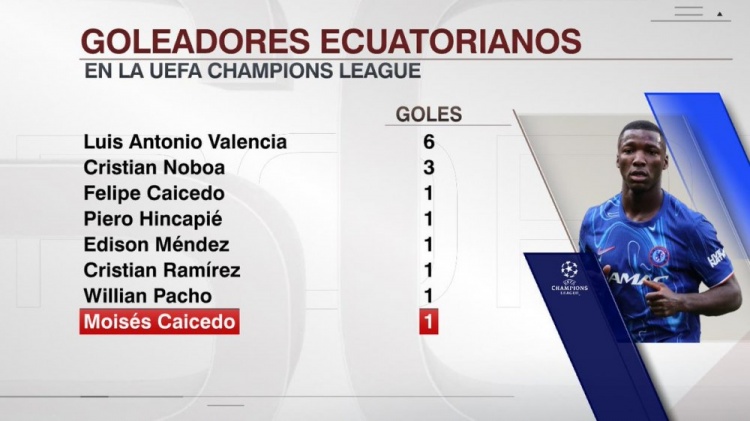 此役凯塞多为切尔西首发出战,并斩获欧冠处子球,他成为第8位在欧冠比赛中破门的厄瓜多尔球员。
