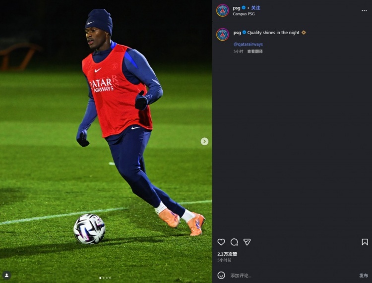 11月21日讯 巴黎官方社媒晒照,努诺·门德斯插足查验。