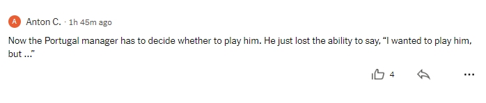 球迷9:当今葡萄牙主帅必须决定是否让他上场,他失去了说“我本来要让他上,恶果...”的契机了。