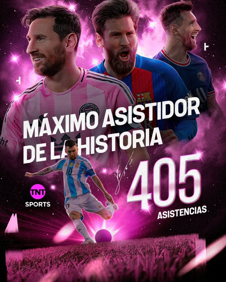 第67分钟,梅西助攻西尔维蒂,迈阿密海外3-1纽约城。TNT发文晒图,这是梅西生计第405次助攻,38岁梅西生计1136场得益405次助攻。