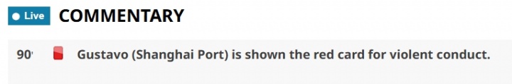 亚足联官网对这次事件的刻画为:古斯塔沃(上海海港)因暴力手脚被红牌罚下。