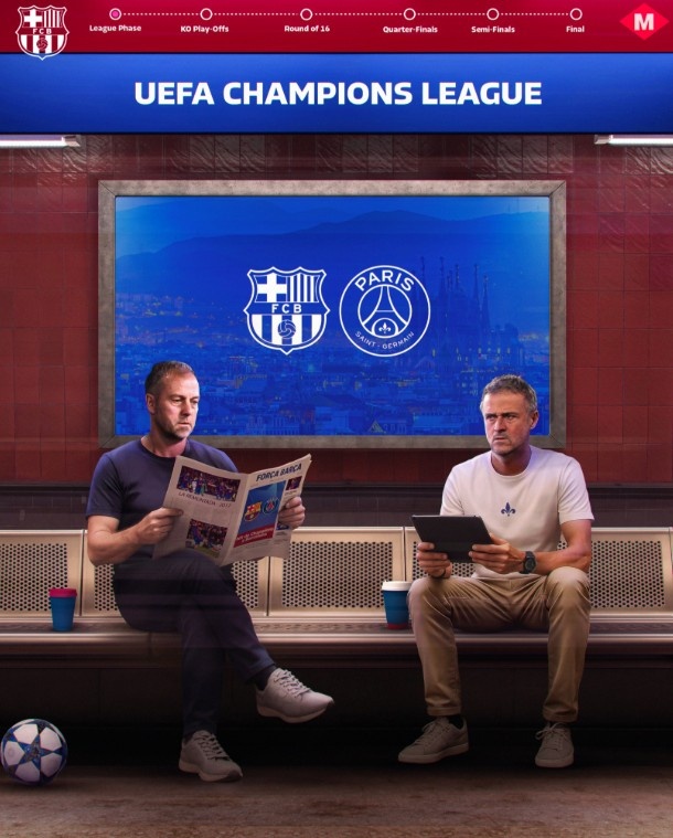 教悔对决!巴萨发布战巴黎海报:弗里克对决恩里克