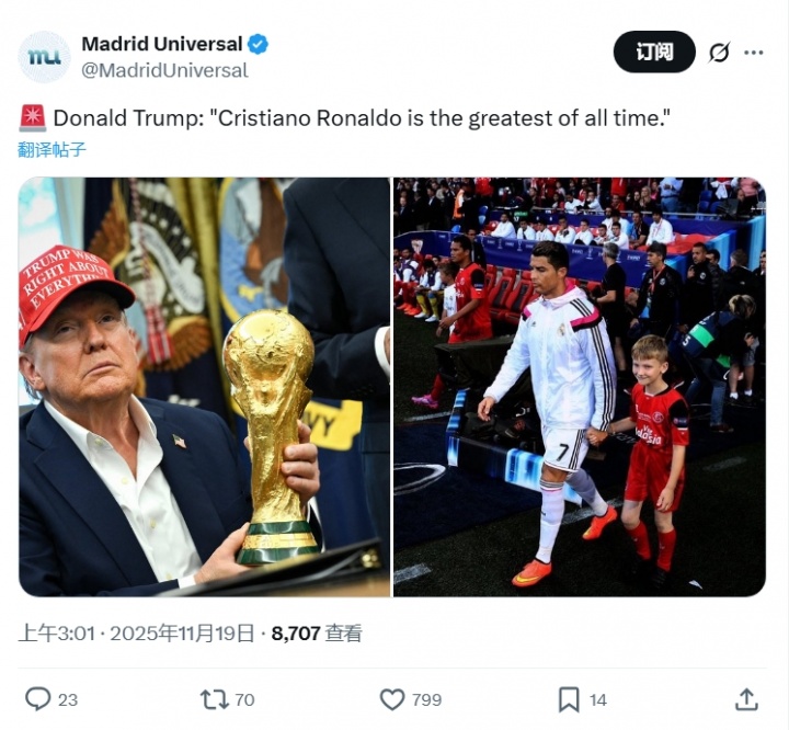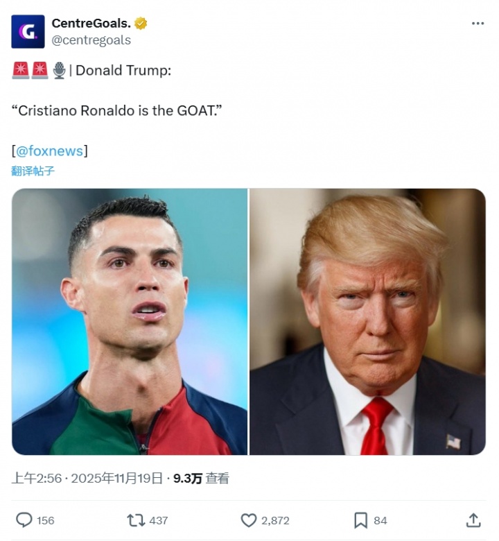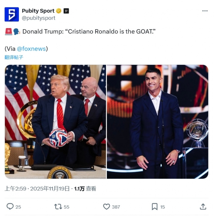 网传特朗普称C罗是历史最好,此音问暂无可靠开始阐明