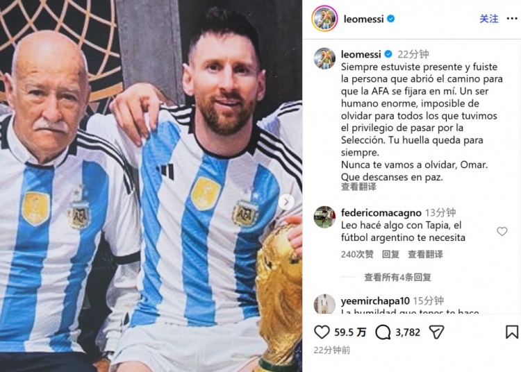 阿根廷队功勋索托弃世!梅西社媒怀念:是你让阿根廷足协征召了我