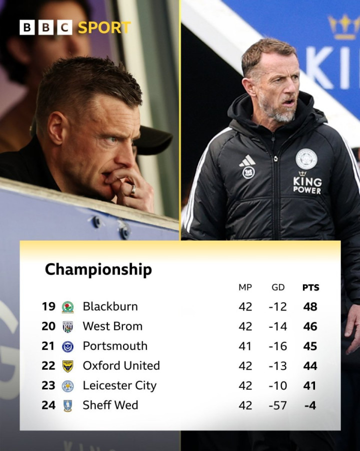 谁曾想到,本赛季莱斯特城不仅没能杀回英超,甚至还即将2年连降2级。此役输球后,莱斯特城随着牛津联和朴茨茅斯本轮双双取胜,莱斯特城的保级形势进一步恶化。