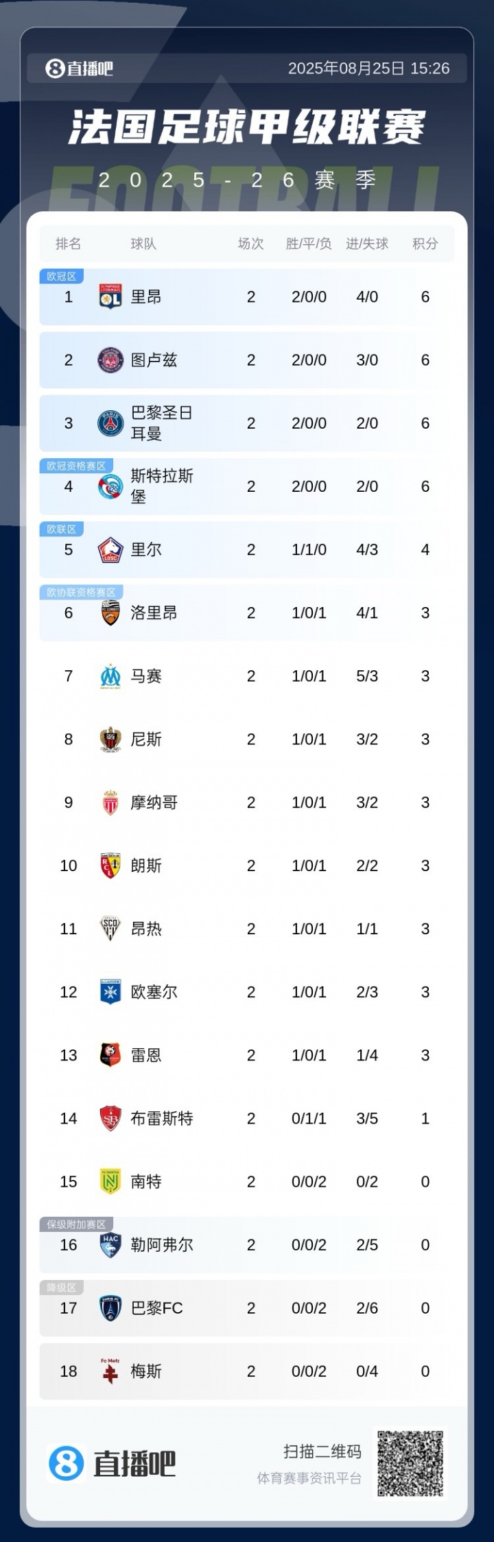 法甲升班马(3队2轮共3分)