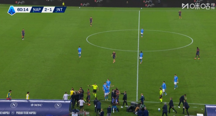 10月26日讯 国米vs那不勒斯第61分钟,劳塔罗与孔蒂场边爆发恣虐,这下劳塔罗没吃牌,孔蒂染黄了!被拉开后,劳塔罗还在隔空打手式,孔蒂则嘴上没停过!