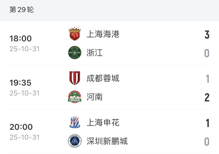 11月03日讯 中超第29轮,成齐蓉城输球退出争冠行列,上海海港、上海申花保留争冠悬念,两队需要恭候22天方才揭晓冠军包摄。